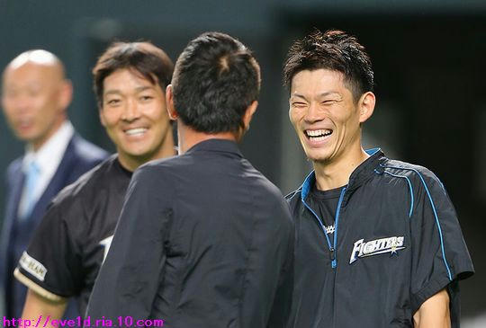 ダッグアウト見学でライバル出現!?大野奨太選手を背後から狙う謎の人物が・・・ ファイターズ 2017年02月28日 前日から載せているダッグアウト見学イベントに参加した時の写真。 大野奨太選手を見つけてカメラで追い続けていますと、 前日の中島卓也選手特集でも載せた 元ファイターズコーチの平野謙氏と談笑を始めるのですが、 背後から謎の人物が大野選手を狙っているように見えます! 談笑に入ろうと高橋信二コーチが近づいてきたのでフレームを横にしたのですが、 背後に写る謎の人物はやっぱり大野選手を狙っているようで僕のライバル出現!? 談笑の輪の中から大野選手が抜けると 謎の人物は行動に移り声を掛けて呼び止めます!! 大野選手は振り返り、ついに謎の人物と対面します!! 大野選手を狙うライバルの正体はいったい!? なんだか見たことがあるシルエットのような気もするけど・・・ 大野選手「なぁ~んだ!ひちょりさんか(*^o^*)」 森本稀哲氏「先輩に向かって、なぁ~んだ!は無いだろうΣ\(^▽^;)」ツッコミ 大野選手「いやぁ~、今日の練習中ずっと誰かに見られている気がしていたから!」 森本氏「えぇっ!?確かに話し掛けるため順番を待っていたけど、 そんなずっとは見ていないよ(?_?)」 大野選手「あっ!じゃあ、目星は付きました!きっとあの人です(*^-^)b」 大野選手「やっぱり!ちゅうさんだっ(σ・∀・)σ」 僕「はい!ずっと大野選手をカメラで狙っていました(*゚ー゚)ゞ」 練習見学で贔屓(ひいき)の選手が目の前に居ましたら、 そりゃあ熱視線を送っちゃいますよね(☆。☆) 今回は、大野選手を取材したい森本稀哲氏と 大野選手を撮りたい僕との2人が同時に熱視線を送った話ですが、 ただ単に僕がお気に入りな最後の3枚を どうしても載せたくて組んだ特集記事だったんです(;´▽`A`` という訳で今回も、なんだかんだ言いながら、 ダッグアウト見学のイベントは とにかく楽しいということでしたо(ж>▽<)y ☆ ファイターズをブログランキングでも盛り上げていきたい!! 1日1回のクリックが応援の力になります。 共にファイターズを盛り上げていきましょう(^O^)/ 北海道日本ハムファイターズ ブログランキングへ エキゾチック・ショートヘア ブログランキングへ 人気記事&おすすめ広告 最近の記事 [29回]PR 393394395396397398399400401402403