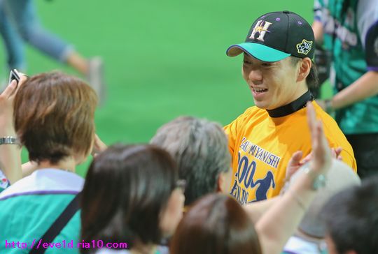 宮西投手通算200H達成記念写真を大ボリュームで載せちゃうよ♪ ファイターズ 2016年05月15日 5月14日、札幌ドームでの埼玉西武ライオンズ戦。 この試合で我らが頼れる鉄腕 宮西尚生投手がプロ史上2人目で パ・リーグでは初となる 通算200ホールドを達成しましたヾ(@^▽^@)ノ スッゴーイ 宮西投手の偉業達成の記念写真を 大ボリュームで載せちゃうぞっ♪(*^ ・^)ノ⌒☆ 7回のマウンドに上がり3者凡退に抑える 見事な投球を魅せます( ・д・)/--=≡(((○ センターフライを陽岱鋼選手がキャッチして3アウト(o^-')b 陽選手から笑顔で記念ボールを受け取る宮西投手♪ 栗山監督が宮西投手のもとへ出向きガッチリと握手(*^o^)乂(^-^*) その後もコーチ陣が次々に宮西投手のもとへ出向きます。 厚澤ベンチコーチ(昨年まで投手コーチ)がグータッチ(o^^)oo(^^o) 吉井投手コーチとはフレンドリーな笑顔の握手(*^o^)乂(^-^*) 高橋信二コーチは捕手コーチ兼打撃コーチ補佐でありながらも チームメイト宮西投手の偉業達成を労います♪ リリーフ投手陣の大活躍もあり特別に嬉しい 勝利のハイタッチ(ノ^^)八(^^ )ノ 4万人を超える超満員の観客に囲まれて 200ホールド達成を祝いました♪ B☆Bから花束が贈られ ポリーちゃんからは記念ボードが贈られました♪ 宮西投手、満身創痍の苦しい時も乗り越えて 積み重ねてきた通算200ホールド達成の偉業、 本当におめでとうございました(`・ω・´)ゞ ファイターズガールによる宮西投手の偉業達成と 勝利を祝うジンギスカンダンス(*゜▽゜ノノ゛☆ って、ただ可愛いガールを載せたいだけじゃんΣ\( ̄ー ̄;) どさくさに紛れて個人的な趣味を出してみました(*゚ー゚)ゞ ヒーローインタビューでは野球解説者の岩本勉氏と 楽しい楽しいトークが繰り広げられました(*^o^*) その中で宮西投手から「金子さんの言葉を借りて」として 「今日は僕の為に集まっていただきありがとうございました!」 と満員の観客から爆笑を誘っていました♪ この名言が代々引き継がれていって欲しいと 笑いと共に感動で胸も熱くなりました(゚ーÅ) フィールドシートの観客とハイタッチ(ノ^^)八(^^ )ノ 超満員の笑顔に包まれた200ホールド記念日でした:*:・( ̄∀ ̄)・:*: ここからは私事のプチ話。 とても感動の試合でしたが、 球場からの帰路でも感動がありました:*:・( ̄∀ ̄)・:*: なんと!帰り道で球界のスーパースター 中田翔選手とバッタリ出会ったのです!! 球場の外でプライベートタイムだったので どんなシチュエーションだったかは言えませんし カメラも出しませんでしたが、 こちらが手を振ると快く手を振りかえしてくれたのです(≧▽≦) 球場の外ですし相手はスーパースターですから 全然スルーされても当然だと思って手を振ったのですが 全く気取らない快い対応に本当に感動しました:*:・( ̄∀ ̄)・:*: 写真は撮ってないので代わりに球場での写真です♪ 中田選手「オッス!ちゅうさん(`・ω・´)ゞ」 嬉しいことが多過ぎて 慣れないパソコンなのに欲張り過ぎ 大ボリューム更新になり遅くなってしまいました(;´▽`A`` テンション上げ上げで これから球場に向かいます! 一週間前に誓ったリベンジの為、 大谷選手の投球と打線の援護を 全力の応援で後押ししてくるぞっ(*゜▽゜ノノ゛☆ ファイターズをブログランキングでも盛り上げていきたい!! 1日1回のクリックが応援の力になります。 共にファイターズを盛り上げていきましょう(^O^)/ 北海道日本ハムファイターズ ブログランキングへ エキゾチック・ショートヘア ブログランキングへ 人気記事&おすすめ広告 最近の記事 [21回]PR 716717718719720721722723724725726