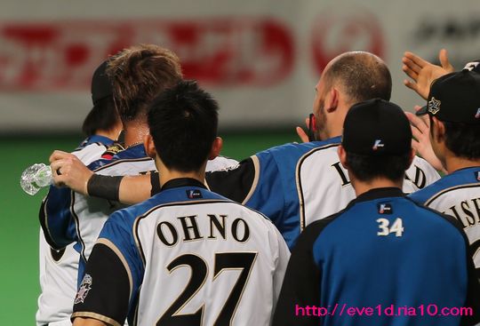 劇的サヨナラ勝利でのスマイル祭りを開催だっ(*゜▽゜ノノ゛☆ ファイターズ 2016年04月28日 4月27日、札幌ドームでの 東北楽天ゴールデンイーグルス戦。 同点で迎えた9回裏、 中田翔選手の勝負決める一振りが炸裂で 球場は歓喜の笑顔に満たされましたγ(▽´ )ツヾ( `▽)ゞ 劇的サヨナラ勝利でのスマイル祭りを開催だっ(*゜▽゜ノノ゛☆ 祭りに水かけは付き物!? 中田選手はモミクシャの水浸しにされます!! あっ!お祭りに加わろうとした大谷翔平選手が とばっちりを受けているよ( ´艸`)ププッ、カワイイ♪ どんちゃん騒ぎの祭りの中、 主役へ飛びヒザ蹴りの暴挙に出た選手がいます∑ヾ( ̄0 ̄;ノ 西川遥輝選手「おりゃ~!今夜は無礼講だぁ~!!」 そして、すぐに群衆へ身を潜める西川選手! 中田選手「ハルキ~、分かっているんだからなぁ~、 お前は俺の殺すリストに入ったぞっヾ(▼ヘ▼;)」 選手一同「おぉ~!さすがヒットマン中田! そんなリストがあるのねヘ(゚∀゚*)ノ」一同拍手を送ります♪ レアード選手「あれっ!?どうしたんだい!? そんなにずぶ濡れで(?_?)」スットボケ ヒットマン中田「その手に持っている空のペットボトルはなんだ!? レアードお前もリストに入ったからなっ(◎`ε´◎ ) 」 中田選手「キュン、お前もリストに入っているんだぞ(●´ω`●)」デレデレ 水をかけていた谷口雄也選手ですが、可愛いって得ですね! ↑上の写真、中田選手と谷口選手がグータッチをしている手前に 勝ち星を逃してしまった吉川光夫投手と 同点を許してしまった増井浩俊投手が 肩を組み歩く姿が見えてホッとしましたε=(。・д・。) それぞれが役割の中で懸命にプレーしているのです! その中で時にはこんな事もありますが チームの勝利が何より最優先のチームスポーツ!! 勝利を喜び肩を組み歩く2人のそんな姿に スポーツマンの爽やかさを魅せられました:*:・( ̄∀ ̄)・:*: たまにはコーチ陣のハイタッチも載せますね! 吉井里人コーチ、金子誠コーチ、高橋信二コーチと(ノ^^)八(^^ )ノ そして最後は、栗山監督とのハイタッチ(*^o^)乂(^-^*) 祭りの最後は監督の笑顔で締めくくられました♪ 劇的なサヨナラ勝利で借金を返済し 勝率5割となったファイターズ♪ まず勝率5割は基本なのですが、 怪我人が続出しているチーム状況の中では 大健闘を魅せていると思います(o^-')b 今は我慢の時! そんな中でもこんなに素晴らしい 感動を魅せることができるファイターズ♪ ファイターズらしい明るいムードで一丸となり チームの危機を乗り切っていこう(*゜▽゜ノノ゛☆ ファイターズをブログランキングでも盛り上げていきたい!! 1日1回のクリックが応援の力になります。 共にファイターズを盛り上げていきましょう(^O^)/ 北海道日本ハムファイターズ ブログランキングへ エキゾチック・ショートヘア ブログランキングへ 人気記事&おすすめ広告 最近の記事 [35回]PR 732733734735736737738739740741742