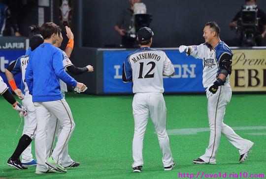 開幕を中田翔劇的サヨナラ満塁弾で飾る!!歓喜の水かけ&抱擁祭りγ(▽´ )ツヾ( `▽)ゞ ファイターズ 2019年03月30日 3月29日、札幌ドームでのオリックス・バファローズ戦。 いよいよ2019ペナントレースが開幕しました! 延長10回裏、一打サヨナラの場面で前の打者2人を歩かされ満塁策で 自分との勝負を選ばれる屈辱を受けた4番・中田翔選手。 相手としましては場面を考えると作戦として最も良い手だとは思えますが、 火を付けてはいけない男のハートに火を付けてしまいましたねヾ(▼ヘ▼;) メラメラ ナメてもらっては困る!とサヨナラ満塁弾で意地を魅せました!! そんな劇的なシーンも良いけれども、選手の表情を載せるのが当ブログの真骨頂! 今回載せるのはサヨナラ勝利で歓喜に沸くお祭り騒ぎな選手達だよγ(▽´ )ツヾ( `▽)ゞ 喜びを抑えられない中田選手はホームベースを囲み 待ち構える選手達の輪の中に自らダイブε= ヾ(*~▽~)ノ さぁ、サヨナラ勝利を祝う歓喜の水かけ祭りが開幕だぁ~γ(▽´ )ツヾ( `▽)ゞ 普段だったら絶対にこんな事は出来ません!! 中田の大将に水を掛ける事が出来るなんて!! 大義名分で大将に水を浴びせる選手達γ(▽´ )ツヾ( `▽)ゞ って、主役の大将が全く見えません!! 輪の中から脱出したズブ濡れの大将をやっと発見!と思いましたら・・・ 次はハイタッチ祭りが開幕(ノ^^)八(^^ )ノ またも大将を見つけるのは困難になりました(;´▽`A`` ハイタッチ祭りから熱き抱擁も始まります! 大将は田中賢介選手を抱き・・・ 新加入の王柏融(ワンボーロン)選手も抱きますヽ(*'0'*)ツ イヤン 王選手もこうしてチームに溶け込んでいますし、 次は主役として水を掛けられる側になっているかもしれませんね! なんとかは忘れた頃にやってくる!なんて言いますが、 祭りが終わったと油断している大将を襲った悲劇!! そう!サヨナラの水かけと言えば鍵谷陽平投手の鍵谷バズーカ!! 大将の顔面に鍵谷バズーカ着弾!! そして、炸裂!! バズーカを顔面に直撃させたにもかかわらず 満面の笑みでハイタッチを求める鍵谷投手と それに前屈みで苦しそうながらも応える大将(ノ^^)八(^^ )ノ そんなファイターズのチームカラーとも言える様子を 新加入のジャスティン・ハンコック投手と 秋吉亮投手もしっかり感じ喜んでくれていました♪ 開幕前、誰が何番を打つのか!?と悩みに悩んだであろう栗山監督。 必ずやってくれると信じて送り出した開幕4番が最高の形で応えてくれた! 信じてくれた監督の想いに最高の結果で応えられ喜び合えたこの瞬間! 言葉は要らない!表情が示す2人の想いがガッチリと通じ合った瞬間(゚ーÅ) もう、興奮冷めやらぬ選手達はベンチでの後片付けもそっちのけで 熱い抱擁を交わして喜びを分かち合っていました! バズーカを炸裂させられた鍵谷投手にもこんなに嬉しそうな表情♪ 「ありがとな!次もまた頼むぞ!」なんて思っているのかな!? 「次もだなんて、またこんな感動を期待しても良いのですか!?」と 勝手な妄想を膨らませファンだって興奮冷めやらぬ状態でしたよ! 帰りの車中も試合の話、中田選手の話で大盛り上がり!! いつまでも興奮冷めやらぬ感動の試合。 これからの2019シーズンを象徴しているかのような開幕戦!! 前回日本一になった2016シーズンも この試合のようにどんなに劣勢な試合展開や ペナントレースでのゲーム差があっても チームとファンが最後まで諦めずに臨んだことで 最後はみんなで笑って喜びを分かち合うことができました! そんなドラマチックなシーズンを予感させる素敵な試合でした:*:・( ̄∀ ̄)・:*: ファイターズをブログランキングでも盛り上げていきたい!! 1日1回のクリックが応援の力になります。 共にファイターズを盛り上げていきましょう(^O^)/ 北海道日本ハムファイターズ ブログランキングへ エキゾチック・ショートヘア ブログランキングへ 人気記事&おすすめ広告 最近の記事 [11回]PR
