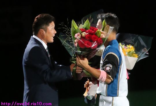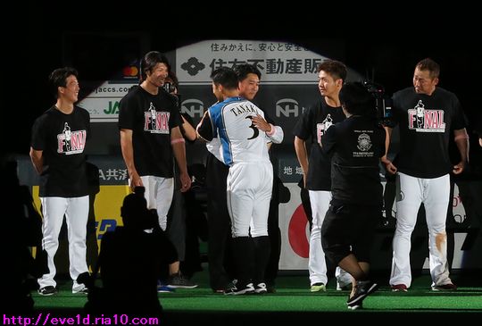 田中賢介選手引退セレモニー(゚ーÅ) ファイターズ 2019年09月28日 9月27日、田中賢介選手引退セレモニー。 明朝早くから仕事の為にゆっくり更新できない状況なのですが、 今この時だけは何としても頑張って出来るだけ沢山の写真を載せたい! 写真解説は必要な所だけで最低限にして枚数をとにかく載せていきます。 ここから花束贈呈。 中島卓也選手 鶴岡慎也選手兼任コーチ 長年ファイターズを支えた『ニヤニヤ 二遊間コンビ』の金子誠コーチ セカンドの守備位置で胴上げ。 ここからはサプライズゲスト達が花束贈呈。 岩本勉氏 稲葉篤紀氏 建山義紀氏 これまで全員と熱い抱擁を交わしてきたのに 自分だけ拒否されて「えっ!?」となった瞬間の稲田直人氏(笑) 森本稀哲氏 ファイターズOB会でレジェンドの仲間入り!? ここからグラウンドを一周。 涙を堪え光景を目に焼き付けながらファンに手を振ってくれました。 選手・コーチ・関係者全員と挨拶を交わしましたが、 厳選して縁の深い前日に引退した實松一成選手をチョイス。 若かりし頃、田中賢介選手と森本稀哲氏と實松一成氏は 先輩やコーチから『3バカトリオ』と呼ばれる ヤンチャな問題児トリオだったそうです( ´艸`) 最後は栗山監督と。 田中賢介選手、20年間お疲れ様でした。 そして、たくさんの感動をありがとうございました。 ファイターズをブログランキングでも盛り上げていきたい!! 1日1回のクリックが応援の力になります。 共にファイターズを盛り上げていきましょう(^O^)/ 北海道日本ハムファイターズ ブログランキングへ エキゾチック・ショートヘア ブログランキングへ 人気記事&おすすめ広告 最近の記事 [23回]PR