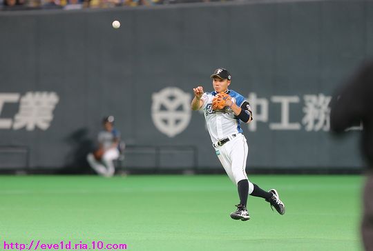 ユニフォーム貰ったよ♪フィールドシートだよ♪楽しんでなんぼの球場観戦(*゜▽゜ノノ゛☆ ファイターズ 2017年04月12日 4月11日、札幌ドームでの福岡ソフトバンクホークス戦。 千賀滉大投手の好投で手も足も出ず 完封負けを喫してしまったファイターズ。 悔しさはあります! けれども、もっと悔しい想いを しているであろう選手達を知っているから! 「もし自分が出ていたら」と、怪我で出場できない選手は 私達ファンや試合に出ていた選手達より 悔しい想いをしているかもしれません!! 怪我で戦線を離脱した大谷翔平選手や 怪我で試合出場を見合わせた中田翔選手は 自分ならなんとか出来たかもしれないと 悔しさで唇を噛みしめていることでしょう! 前日の更新で書きました! 平成のON、大谷選手と中田選手から 勇気を貰った僕は覚悟が決まっています! どん底であればある程にそこから這い上がり 2つの『翔』が天を翔る(かける) 平成のON伝説が生まれることを信じているから! 開幕したばかりのこの時期に連敗がもう1つ重なろうと 平成のON伝説が輝きを増す材料にしかならないと 気持ちを切り替える勇気を貰っているから! これまで皆の想像を打ち破り数々の伝説を魅せてきた 『大谷翔平』という男の存在が僕に勇気を与えますp(^-^)q 大谷選手が戻ってきて常識破りの快進撃を魅せる日まで 私達ファンが前向きな気持ちを忘れない事が大切です! この日の試合も敗れはしましたが、 ファイターズを好きであり続ける為に 観戦を楽しむ事を大切にしてきましたよ♪ まずは、先日に予告していた杉谷拳士選手を撮る事から! って、試合に出場していないじゃんΣ\( ̄ー ̄;) しかし、杉谷選手は出場していなくても 元気がベンチでの大きな戦力になるのですが、 この日に元気なのは杉谷選手だけではありませんでした!! 左から順に、 開幕して見違えるほど元気になった近藤健介選手。 バットを持ち席を立った横尾俊建選手の次は、 この日に一軍登録され代打出場でプロ初打席も果たした 僕が期待を寄せるルーキー森山恵佑選手♪ 杉谷選手に負けない位に声が出ていた清水優心選手。 若手より元気!?この後に踊ってました矢野謙次選手( ´艸`) す、杉谷選手(゚ー゚; 確かに凄く声が出ていましたが みんながこれだけ頑張っているだけに それを超えるパフォーマンスを魅せなきゃ 存在が霞んでしまいますよσ(^_^;) というように、杉谷選手の元気が霞んでしまう位に 連敗中とは思えない気持ちで負けない良い雰囲気(*゜▽゜ノノ゛☆ 選手が前を向いて一生懸命なのに ファンが先に諦めるわけにはいきませんよね(b^-゜) このシーンを見られた事も前向きでいられる要素の1つとなりました♪ やっぱり球場観戦は良いなぁ~♪ 楽しんでなんぼの球場観戦(°∀°)b ここからはファンクラブ先行のユニフォーム配布と 特別な席での観戦を楽しんだ事を載せていきます♪(*^ ・^)ノ⌒☆ この日はファンクラブ会員限定で先着2万名に 2017 WE LOVE HOKKAIDOユニフォームが先行配布されました♪ モデルには僕の推しガール『あすみん』こと ファイターズガールの藤原明日美ちゃんに協力してもらいます♪ って、ヘソ出しな着こなしでセクシーになっちゃってますよぉ~(/ω\) あすみんにも会えたし嬉しい気持ちでいると、 シーズンシートでの毎試合観戦で顔なじみな方からのご厚意で 最後の2イニングをフィールドシートで観戦させて頂きました♪ しかも、席に着くとファイターズ賛歌で またも あすみんに会えましたぁ~о(ж>▽<)y ☆ 臨場感溢れる写真が撮れるフィールドシートから 先日写真が不足していると書いた2選手も撮れました♪ 横尾俊建選手 ルーキーの石井一成選手 2イニング限定とはいえ沢山の写真が撮れたので 上の2選手は打席と守備の両方を載せました♪ 上向き要素として打線上昇の鍵を握るレアード選手に長打が出たので そちらもフィールドシートの臨場感と共に載せます! ランナー1塁から近藤選手が一気に3塁を狙うシーンですが、 さすがグラウンドレベルからの臨場感ですε=ε=ε= ヾ(*~▽~)ノ 2アウト2・3塁として千賀投手を攻略するあと一歩の所までいきました! 普段何気に撮っているシーンも迫力が増したり 違った見え方・撮れ方になるフィールドシート! まだまだ臨場感溢れる写真は撮れていますし たくさんの選手も撮れています♪ 最後は色々撮れている報告とそれを載せたい予告として 中島卓也選手のランニングスローのファインプレーを載せます♪(*^ ・^)ノ⌒☆ 怪我で出場できず悔しい想いをしている選手がいる! どん底のチーム状況でも諦めていない選手達がいる! どんなに辛い状況であろうともファンが先に応援を辞めてはいけない! そんな辛い状況だからこそ尚更応援を頑張らなければいけない! 敗戦が辛いなら敗戦の中からでも楽しさを見つけ出し 応援を続ける元気を分かち合おうというのが今回の主旨(b^-゜) 大谷選手の復活から常識破りな快進撃を信じているから それまでファンのみんなと応援の炎を燃やし続ける為にも 