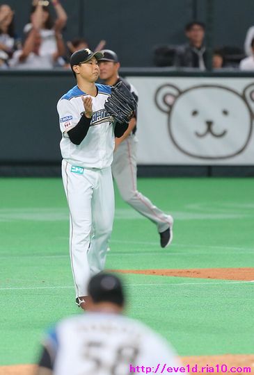 3部作構成。大好きは止まらない!大好きを形にしたらこうなっていました(*゚ー゚)ゞ ファイターズ 2017年09月14日 まずはWEB投票ご協力のお願い(^人^) 畠山茉央ちゃんがフレキャン2次選考を通過して 3次選考のWEB投票が始まりました。 茉央ちゃんファンの方や共に茉央ちゃんを応援してくださる方は 1日1票の投票をお願いします(ノ´▽`)ノ ⌒(応援) 詳細と応援・投票はこちらへ ↓↓↓ FRESH CAMPUS CONTEST(通称:フレキャン) さぁ、本題です。 9月13日、札幌ドームでの千葉ロッテマリーンズ戦。 この日の結果によって3位以上の可能性がゼロになってしまった訳ですが、 ファイターズがいつも勝ち試合を提供してくれるAクラスのチームだから 好きという訳ではなく、どんな時もファイト溢れるプレーで勇気を与えてくれる 名前の通りにファイターズだから好きなんですp(^-^)q Bクラス確定でも好きな事は変わらない! 今回も変わらず選手の頑張って輝く姿を載せていきますよ♪(*^ ・^)ノ⌒☆ キラキラ 本日は3部作の構成で書き綴っていきます。 第1部の主役はロングリリーフで 4イニング無失点の好投を魅せた村田透投手です! って、写真は西川遥輝選手じゃんΣ\( ̄ー ̄;) じつは上の西川選手、村田投手のモノマネをしているんです! ベンチでは2人で談笑していますがどんな話をしているのかな!? というか、親密すぎて距離感が近すぎませんかヽ(*'0'*)ツ ドキドキ いろいろと妄想は膨らんでしまいますが、 西川選手「オレのモノマネどうッスか!?」 村田投手「もう少し左足を上げてみて(b^-゜)」 西川選手「そうかぁ~!次までに修正してみせますよ(*゚ー゚)ゞ」ポリポリ と試合中なのに相変わらず勝手な妄想を膨らませながら 存分に観戦を楽しんでいるのですが、 西川選手はプレーだけでなくベンチでも投手と野手との架け橋になって チームの中心選手として歩んでいると感じました(b^-゜) チーム内の隔たりを感じられないのがファイターズの魅力の1つ(b^-゜) ここからは村田投手の好投を支えた野手陣の活躍を載せていきます♪(*^ ・^)ノ⌒☆ バッテリーを組んだ市川友也選手が肩で魅せます( ・д・)/--=≡(((○ 5ー4ー3のダブルプレーではレアード選手( ・д・)/--=≡(((○ 途中出場の田中賢介選手( ・д・)/--=≡(((○ ダブルプレー成立で村田投手は小躍りするかのように 後ろにステップを踏みながら拍手を送ります! 小気味よく踊るような姿はまるで感謝の舞い(*゜▽゜ノノ゛☆ 田中賢介選手に感謝(ノ^^)八(^^ )ノ 最終回からバッテリーを組んだ黒羽根利規選手にも ダブルプレーに打たせて取った配球への感謝(ノ^^)八(^^ )ノ 村田投手の野手陣への感謝を前面に表す姿勢に好感を持てます(o^-')b ファイターズ向きな村田投手の投球と人柄にこれからも期待していますp(^-^)q 第2部は観戦に華を添えるファイターズガール☆彡 まずはジェット風船のシーンから。 観戦間隔があいていたのもありますが それ以上に久しぶりな感じがする 『あすみん』こと藤原明日美ちゃん(^-^)ノ~~アスミーン そして、畠山茉央ちゃん(^-^)ノ~~マオチャーン って、本当はもっと近くで撮りたい! アップで撮りたい理由があるのですが・・・ そうしましたら、8回途中のファイターズ賛歌で 茉央ちゃんが目の前に来てくれました(≧▽≦) 髪の毛がリボンになっているのが分かりますか!? この日の茉央ちゃんは前髪をリボンにする ヘアアレンジをしていたんですヘ(゚∀゚*)ノ スゴーイ!! 茉央ちゃんのおかげで広がったファイターズガールを撮るという観戦の楽しみ♪ 劣勢ムードであってもそれを跳ね返して勝利の喜びを分かち合いたい!という、 萌える 燃える心で最後まで応援を頑張ることができるんですp(^-^)q さぁ、燃える心のあかね雲、明日に向かって飛んでいけ ε= (ж>▽<)y ☆ 明日に向かって飛んでいって欲しいのが 第3部に載せる希望の光☆彡 0点に抑え込まれて迎えた9回裏、 横尾俊建選手が2試合連続となるホームランで一矢報います !! 若さ溢れる豪快なフルスイングで零封の嫌なムードを吹き飛ばし 明日に繋がる一発を放ってくれましたε= (ж>▽<)y ☆ さぁ、みなさんご一緒に「おにぎり おにぎり もう一個ヽ(゜▽、゜)ノ」 って、ライオンズの『おかわり君』こと中村剛也選手の応援風( ´艸`) 背景にも写り込んでいますが横尾選手がホームランを打つごとに 球場におにぎりグッズが増えていきそうですね(°∀°)b 横尾選手をおにぎりポーズで迎えるのかと思いましたら 西川選手のそのポーズは何ですか!? って、じつは前日の試合で西川選手のホームランの時に 横尾選手がこのポーズでお迎えをしていたんです! こんな所からも選手間の仲の良さを感じられますよね! 次の試合に繋がる希望の光りは、 横尾選手の開花を予感させる2試合連発おにぎり弾と、 西川選手が中心になって作り出す選手間の隔たりが感じられない ファイターズらしい一体感のある良いムードでした(*^o^)乂(^-^*) って、3部作と書いておきながら 西川選手に始まり西川選手に終わる ファイターズ西川劇場じゃん