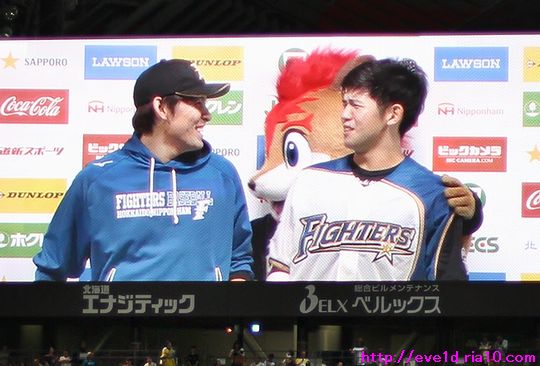 撮りたいシーンがザックザク撮れた最初から最後まで幸せ過ぎた1日:*:・( ̄∀ ̄)・:*: ファイターズ 2017年09月17日 まずはWEB投票ご協力のお願い(^人^) 畠山茉央ちゃんがフレキャン2次選考を通過して 3次選考のWEB投票が始まりました。 茉央ちゃんファンの方や共に茉央ちゃんを応援してくださる方は 1日1票の投票をお願いします(ノ´▽`)ノ ⌒(応援) 詳細と応援・投票はこちらへ ↓↓↓ FRESH CAMPUS CONTEST(通称:フレキャン) さぁ、本題です。 9月16日、札幌ドームでのオリックス・バファローズ戦。 残り少ない試合を存分に楽しもうと臨んだ観戦。 そして、入場ゲートから訪れた幸運☆彡 いつも思っている事なのですが、 僕はきっと良い人との巡り合わせに恵まれているんですよね! またも入場ゲートでバッタリ会えたファイターズガール追っかけのO師匠。 畠山茉央ちゃん情報を教えていただきありがとうございました(^人^)カンシャ O師匠のおかげでテラスステージに直行して マスコットステージの茉央ちゃんを撮ることができました(*゜▽゜ノノ゛☆ ご厚意ってとても嬉しい事ですよね! そして、こんな追っかけ初心者の僕でもお役に立てることがあったようで、 メッセージを頂いていたYさん、報告もしっかり読ませていただきましたよ! Yさんがファンだという渡邊姫琳ちゃんを載せたいと思っていたのですが こんなに可愛い写真が撮れちゃいました(〃∇〃) というように、撮りたい写真がザクザク撮れてしまった幸運なこの試合♪ キラキラ輝く選手の写真もザックザクと載せていきますよ♪(*^ ・^)ノ⌒☆ 1回表、先頭打者の打球を松本剛選手がファインプレー!! 出塁を許していれば流れを持っていかれていた可能性も高い場面なだけに 超ファインプレーと言っても良いかもしれませんね(≧▽≦) キャァ~!ゴウクーン!! シーズン終盤、気になるタイトル争い。 僕が最も気になるのは西川遥輝選手の盗塁王争い。 3位以下を大きく引き離して1位と2位で 熾烈な争いが繰り広げられているこの部門。 この試合の盗塁で2位のライオンズ源田壮亮選手(34個)に対して 西川選手が36個となり2個差にしましたε=ε=ε= ヾ(*~▽~)ノ 4試合で3おにぎりヽ(゜▽、゜)ノ オニギリ~ 『おにぎり君』こと横尾俊建選手のホームランで おにぎりを握るシーンも撮れちゃいましたヽ(゜▽、゜)ノ リプレイ検証になった大谷翔平選手のホームクロスプレー。 なぜアウトの判定!? 写真を撮っている僕は検証の結果が出る前から 判定が覆る事は分かっていましたよ(b^-゜) 大谷選手はセーフに判定が変わるとベンチ裏からダッシュで出てきて 両手を上げて手を叩き喜んでいました≧(´▽`)≦ というか、ベンチ裏でも喜ぶ事はできたでしょうから わざわざ出てきたのは、しっかり判定してくれた 審判団に対して拍手を送るためだったのかもしれませんね! 大谷選手の生還が認められ中田翔選手の打点が成立したことにより 中田コールの声援で一塁側にも応えてくれる 僕の大好物なシーンが撮れちゃいました(*^o^*)/~ ショウサーン もう、撮りたいシーンがザックザクと撮れたこの試合♪ ここからはヒーローの写真を載せていきます♪(*^ ・^)ノ⌒☆ この試合はバッテリーでヒーローになりました(*^o^)乂(^-^*) 先発投手の高梨裕稔投手( ・д・)/--=≡(((○ バッテリーを組むのは清水優心選手。 清水選手はバットでも高梨投手を援護しました! 同点で迎えた6回裏に勝ち越しとなる2点タイムリー2ベースヒットv(^-^)v 決勝打でヒーローに名乗りを上げました(^O^)/ バッテリーのヒーローが誕生したのですが、 2人の距離感はずいぶん近いなぁと見ていましたら 清水選手に言わせると2軍時代に嫌と言う程に バッテリーを組んでいたようですね( ´艸`)ププッ。イヤナノ!? その清水選手のお立ち台でのヒーローインタビュー。 不慣れなヒーローは言いたい事が空回りして それが逆に笑いを誘った訳なのですけれども、 終了後にはこの表情とフレップからも肩をポンと叩かれますが、 これからどんどん活躍してお立ち台にも慣れていってください。 貴重なバッテリーでのヒーローも撮ることが出来ました(*^o^)乂(^-^*) 試合終了後にファミリーデーのグラウンド開放では ファイターズガールの今シーズン集大成となる ダンスステージイベントが開催されました。 開始までは結構な待ち時間があった為 球場を後にしなければならなくなった瞬間にステージ開演! もうグラウンドを出ようと歩を進めていたタイミングだっただけに 帰る前に一目でも茉央ちゃんを見られただけで満足(*゜▽゜ノノ゛☆ カメラを片付けグラウンドを後にしようと思いましたら 茉央ちゃんが人混みの中から僕の事を見つけてくれたぁ~ヽ(*'0'*)ツ 気のせいかもしれませんが一瞬のことなので設定は後回しでシャッター最優先!! ノイズが多くなってしまったことはご勘弁m(u_u)m 最後の最後に茉央ちゃんの目線と笑顔をいただきました:*:・( ̄∀ ̄)・:*: 最初から最後まで幸運に恵まれたこの試合♪ 試合の撮りたいシーンはザックザクと撮