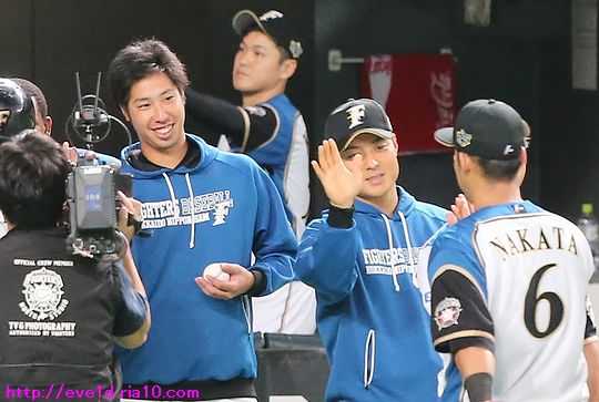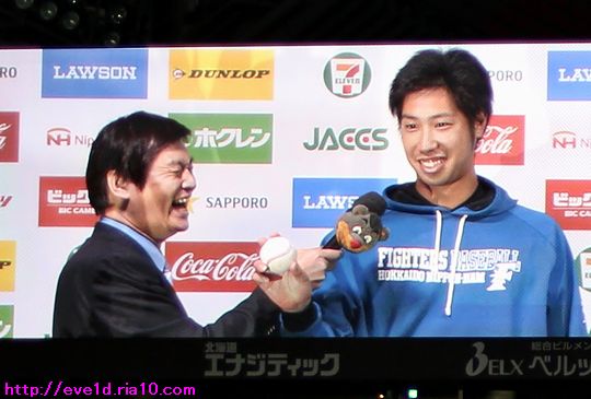 全力観戦日記♪吉田侑樹投手プロ初勝利を盛大に祝っちゃうよ(*゜▽゜ノノ゛☆ ファイターズ 2017年09月19日 まずはWEB投票ご協力のお願い(^人^) 畠山茉央ちゃんがフレキャン2次選考を通過して 3次選考のWEB投票が始まりました。 茉央ちゃんファンの方や共に茉央ちゃんを応援してくださる方は 1日1票の投票をお願いします(ノ´▽`)ノ ⌒(応援) 詳細と応援・投票はこちらへ ↓↓↓ FRESH CAMPUS CONTEST(通称:フレキャン) さぁ、本題です。 9月18日、札幌ドームでのオリックス・バファローズ戦。 台風が北海道に上陸したことで 観戦を断念しなければならない方も多かったでしょうね。 そんな方々の為にも観戦の雰囲気を楽しめるように 僕の主観ではありますが観戦日記を載せていきます。 カメラ機材の大荷物がある為に雨対策も大変ではありましたが、 そんな苦労は入場ゲートでどこかに吹っ飛んでしまいました! ファイターズガール畠山茉央ちゃんがお出迎え(≧▽≦)ウッキャァ~♪ お客さまに配る傘のビニール袋を手にポーズを決めてくれて 「悪天候の中のご来場ありがとうございます☆-( ^-゚)」 って、どんな物でポーズを決めても可愛いッス(///∇//) デレデレ 茉央ちゃん大好きで一途な僕(*゚ー゚)ゞ 週末観戦のランチも一途に『中華ごはんマーボー』で食べます♪ この日はカレーマーボー丼(ご飯をセットにして丼に)♪ 前日載せた『青山椒(あおさんしょう)入り激辛マーボー丼』と シーズン通してヘビーローテーションな位に一途ヽ(゜▽、゜)ノ いやぁ~、先程お出迎えしてくれた山根朱里(あかり)ちゃんも 笑顔が素敵で以前から気になっていたんだよなぁ~(〃∇〃) って、浮気心を出しちゃって全然一途じゃないじゃんΣ\( ̄ー ̄;) そんな一途とは言葉だけで気の多い僕ですが、 鼻の下をデレデレと伸しながら自分の席に着席して 試合前シートノックを撮るためにカメラを構えると・・・ 中田翔選手「ちゅうさん、女のケツばかりを 追い掛けていないでオレのケツを撮れΣ\( ̄ー ̄;)」オシリペンペン 僕「はい!ごもっともでございます(*v.v)。」オハズカシィ~ 中田選手からのご指摘を受けて選手を撮り続けていたおかげで 大好きな西川遥輝選手から目線を頂きその写真も撮ることができました♪ 西川選手「ちゅうさん、オレの活躍も撮って載せてよ(^-^)ノ~」 僕「はい!うちのブログは西川選手が主役ですからぁ~(*^o^*)/~」 と、選手を前にすると妄想が暴走してしまう僕ですが、 試合前からこんなにも楽しんでしまいました(*゜▽゜ノノ゛☆ ここからは試合の写真ですが、 この試合は吉田侑樹投手が主役です(°∀°)b 吉田投手はプロ初勝利を目指すマウンド。 吉田投手の勝利に向けて初回から打線が援護します! 満塁から横尾俊建選手が2点タイムリー2ベースヒットv(^-^)v 生還した大谷翔平選手と中田翔選手で 平成のONタッチが撮れちゃいました(ノ^^)八(^^ )ノ 3塁へ進んだレアード選手と2塁上の横尾選手は 「ナイスおにぎり」と「ナイスお寿司」のジェスチャーで 互いの健闘を称え合うエール交換が行なわれていました( ´艸`) 援護を貰った吉田投手は勝利投手の権利が発生する5回どころか、 なんと!7回までマウンドに上がり続けましたヘ(゚∀゚*)ノ スゴーイ 観客席もジェット風船の準備は万端のようですから・・・ 吉田投手の大きな一歩を踏み出すプロ初勝利に向けて ジェット風船を飛ばしちゃいましょう(°∀°)b って、茉央ちゃんを載せたいだけじゃんΣ\( ̄ー ̄;) いいえ!茉央ちゃんだけじゃありませんよ(*^-^)b エッヘン 笑顔が素敵な朱里ちゃんにもご協力いただき、 この日のガールは茉央ちゃん&朱里ちゃんデー(*^o^)乂(^-^*) バズーカを持って朱里ちゃん 「レアード選手と西川選手、吉田投手への祝砲もお願いしまぁ~す(^-^)ノ~~」 レアード選手がドッカーン!! 西川選手もドッカーン!! 2発の祝砲も上がってプロ初勝利を挙げた吉田投手は ウイニングボールを手にしてニッカリ笑顔を魅せます(≧▽≦) ニカァー ヒーローインタビューでウイニングボールを手にした感想を聞かれて 「投げやすそう」と答え、大切は物ですからもうそれを投げてはいけませんし、 観戦に来られたという「ご両親に何か一言」とお願いされると 自分の親に向かって「ご両親」と声を掛けてしまう等、 初お立ち台の緊張なのか、しかし、それ以上に天然キャラの匂いをプンプンと感じ、 今後は投球だけでなくキャラクターにも注目したくなりました(°∀°)b キャラクターと言えば、横尾選手もキャラクター色が濃いですし、 マスコットも含めて5人のキャラクターが集まっての 可愛らしい勝利の記念撮影会になりました( ´艸`) これまでの登板を観てきて勝ち星を挙げる日は近いだろうと 期待していた吉田投手の嬉しいプロ初勝利だったのもありますし、 新キャラクター達の輝く未来を予感させる嬉しく楽しい勝利だったので、 大ボリュームで盛大なお祝いにしてみましたγ(▽´ )ツヾ( `▽)ゞ いつもより早いシーズン終わりの寂しさを胸の奥で感じながらも それ
