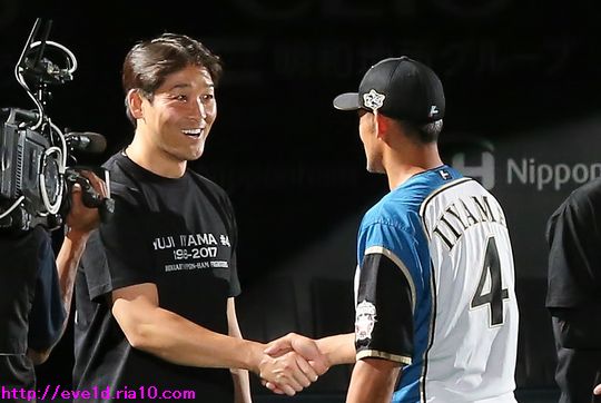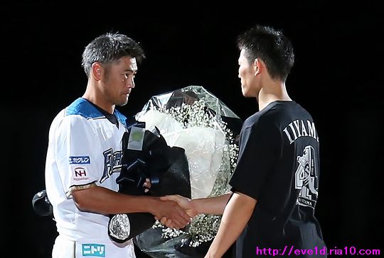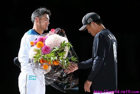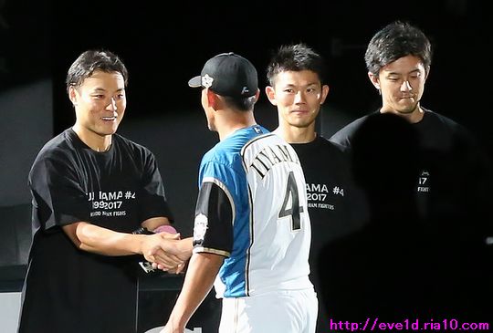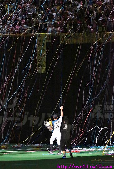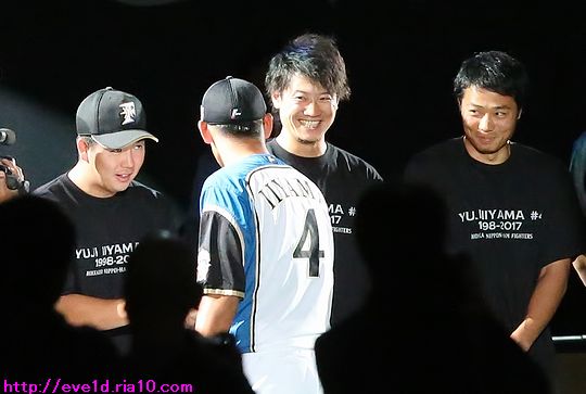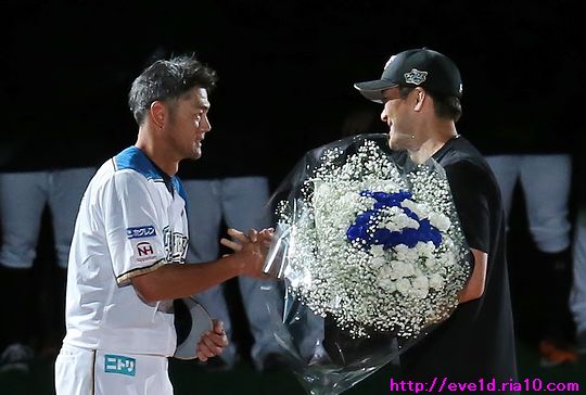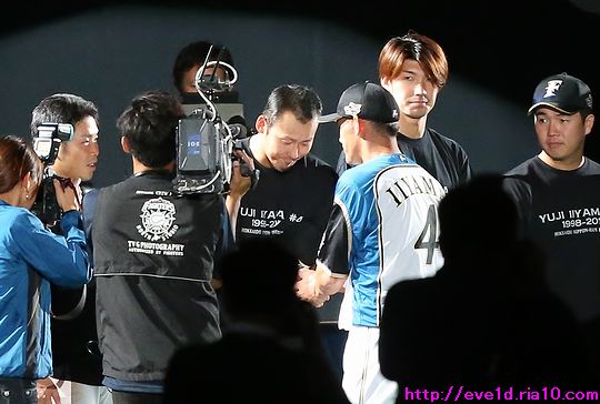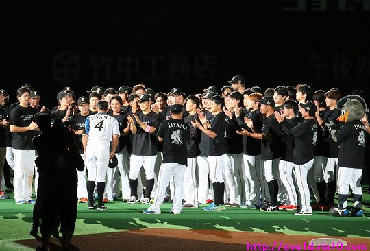 感動の飯山裕志引退試合&セレモニー(゚ーÅ) ファイターズ 2017年10月04日 今回は時間とブログ容量との戦いをしながらの更新となります。 とにかく写真をたくさんで解説は極力簡単めにいきます。 ではみなさん大ボリュームを覚悟のうえで 感動の飯山裕志選手引退試合&セレモニー写真をご覧下さい。 試合前の円陣では飯山選手が発声。 守備のストッパー・飯山選手の出番は 1イニング早い8回表からになりました。 観客席の拍手に包まれながら守備に就きます。 意地を見せるオリックス・バファローズの猛反撃を断ち切ったのは 同じくこの回から守備に就いた盟友・田中賢介選手との 4ー6ー3のダブルプレーでした。 メモリアルな試合の本人によるビックプレーに 大興奮のチームメイトは全員でのお出迎え。 イニング間のこれだけは載せさせてください。 今季限りで引退するファイターズガールの安念莉紗子ちゃん。 飯山選手の引退試合というセレモニーな大舞台に ファイターズ賛歌で華を添えました♪ 直後の8回裏、先頭打者の田中賢介選手が 2ベースヒットでチャンスを切り開くと まだセーフティーリードであるにもかかわらず 2塁ベース上で手を叩き珍しく喜びを露わにします。 それは、飯山選手の最終打席にチャンスのお膳立てを出来たからかもしれませんね! 飯山選手が打席に入ると選手一同立ち上がり拍手を送ります。 スタンドのファンからは登場曲である長渕剛『勇次』の大合唱♪ 結果はフライアウトになりましたが 監督・コーチ・選手一同から拍手で最終打席の労いを受けます。 レフトスタンドの応援団を中心に球場全体から裕志コールが送られました。 野球の神様からの粋な計らいは最終打席ではなく 『守備のストッパー』に相応しく9回2アウトに用意されていました。 最後の打者をショートゴロに打ち取って・・・ 飯山選手自らのプレーで勝利の瞬間を飾ることができました♪ 中田翔選手からは捕球したウイニングボールを 飯山選手に手渡す粋な計らい(゚ーÅ) チームメイトから拍手で迎えられる飯山選手。 栗山監督は20年間の現役生活に敬意を表して脱帽で迎えます。 さぁ、感動の引退セレモニーです。 関係の深いコーチ・選手から花束が送られます。 高橋信二コーチ 同期入団の小田智之コーチ 大号泣の田中賢介選手 大野奨太キャプテン 飯山選手らしい深みのある挨拶では、 強い体に産んでくれた母親と 強い心に育ててくれた父親との ご両親への感謝の言葉に凄く感動しました(゚ーÅ) 挨拶の後は、飯山選手の登場曲『勇次』を これまで現役生活にかかわってきた方々一同で大合唱する サプライズの特別編集映像が飯山選手に送られました( ´艸`) そして、胴上げでは笑顔で宙に舞いました。 記念撮影 選手一同から拍手で送られ グラウンドを一周します 背中で語る後ろ姿が素敵♪ スタンドからは無数の紙テープが投げ込まれ花道を飾ります。 選手や関係者全員と握手を交わします。 全ては載せられないので一部だけ。 大谷翔平選手 中島卓也選手 西川遥輝選手 横尾俊建選手の時に飯山選手は何か面白い事を言ったのでしょうね! それとも影で見えないけれども握っているのは 横尾選手の手ではなくオニギリかな!? 大田泰示選手、中田翔選手、近藤健介選手。 増井浩俊投手、大野奨太選手、田中賢介選手。 長きを共にしてきた金子誠コーチとは熱い抱擁。 高橋信二コーチ 栗山監督とも熱い抱擁で終わるかと思いましたら・・・ 稲葉篤紀SCOも駆けつけて来てくれて熱い抱擁。 それを見つめる武田勝氏も・・・ 抱きつこうとしますが拒まれ怪訝(けげん)な表情。 2人だからのやりとりも見られました♪ 裕志コールの大声援に包まれて球場を後にする飯山選手。 現役生活20年間、お疲れさまでした(`・ω・´)ゞ そして、たくさんの感動をありがとうございました(゚ーÅ) ファイターズをブログランキングでも盛り上げていきたい!! 1日1回のクリックが応援の力になります。 共にファイターズを盛り上げていきましょう(^O^)/ 北海道日本ハムファイターズ ブログランキングへ エキゾチック・ショートヘア ブログランキングへ 人気記事&おすすめ広告 最近の記事 [37回]PR