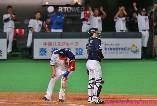中田翔選手はファイターズの歴史に名を残す名キャプテンになってくれるでしょう! ファイターズ 2018年07月31日 7月29日、札幌ドームでのオリックス・バファローズ戦。 この日の観戦更新は中田キャプテン特集。 年々素敵さを増してきた中田翔選手ですが、 キャプテンに任命されてからは加速度を増して チームリーダーとしての素敵さに どんどん磨きがかかってきているように感じます。 最初の1枚は試合前シートノックの守備位置に就く直前 ファンの声援に手を振り応えてくれた素敵なファンサービス(^-^)ノ~~ 週末はこの一瞬の為に頑張り早い球場入りをして 中田キャプテンに会いに行っていますε=ε=ε= ヾ(*~▽~)ノ キャプテーン ここからは中田キャプテンが気迫のヘッドスライディングと走塁で チームを鼓舞して牽引する素敵なシーンです:*:・( ̄∀ ̄)・:*: 中田キャプテンが気迫のヘッドスライディングを魅せたなら 必ずチームメイトがホームまで生還させてくれるだろうと思いましたが レアード選手がその気迫にタイムリーヒットで応えてくれました! 体が大きくて走るのが得意ではない中田キャプテンだから 必死に走る姿が心を打つんですよね! 全力疾走のままホームに生還! 「もう走れない」とうずくまる中田キャプテン。 なんか数年前に往年の名キャプテンの 同じようなシーンがあったことを思い出しました( ´艸`) キャプテンの激走での先制点に大喜びのチームメイト達γ(▽´ )ツヾ( `▽)ゞ ホームランだけでなく全力プレーでチームを牽引する中田選手の姿に キャプテンに任命した栗山監督もご満悦。 チームメイト達もキャプテンの激走を称えるハイタッチ祭り(ノ^^)八(^^ )ノ 3アウトチェンジとなりレアード選手はベンチに戻り チームメイト達のハイタッチによるお出迎えで称えられます(ノ^^)八(^^ )ノ レアード「ん!?翔はまだ立ち上がれないのかい!?」 全力を出し切ってしばらく動けないでいた 中田キャプテンを冷やかすレアード選手( ´艸`) この試合の全力プレーでチームを牽引する姿は 往年の名キャプテン・稲葉篤紀現SCOに重なって見えたりもします。 チームメイトからもファンからも愛される中田キャプテンは チームを頂点へと導きファイターズの歴史に名を残す 名キャプテンになってくれると信じていますp(^-^)q ファイターズをブログランキングでも盛り上げていきたい!! 1日1回のクリックが応援の力になります。 共にファイターズを盛り上げていきましょう(^O^)/ 北海道日本ハムファイターズ ブログランキングへ エキゾチック・ショートヘア ブログランキングへ 人気記事&おすすめ広告 最近の記事 [28回]PR 130131132133134135136137138139140