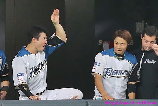 宮西バースデーに主砲の祝砲3発でベンチは狂喜乱舞の大盛り上がりγ(▽´ )ツヾ( `▽)ゞ ファイターズ 2018年06月03日 6月2日、札幌ドームでの中日ドラゴンズ戦。 6月上旬はファイターズ選手の誕生日ラッシュ♪ この日は宮西尚生投手の誕生日でバースデー登板がありました♪ 1点リードの接戦で迎えた7回表を しっかり三者凡退に切って取りリードを守り抜き 雄叫びを上げグローブを叩く気迫を魅せましたヾ(。`Д´。)ノ ガオォーー その1点リードは5回裏の大田泰示選手のホームランで この試合の決勝点となり宮西投手の誕生日を勝利で飾りましたv(^-^)v 大田選手は勝ち越しホームランのあまりの嬉しさで 中田翔選手とのハイタッチで飛び上がって喜びます ε=(ж>▽<)y ☆ この時のベンチは人数が少なかったのでハイタッチ祭りは盛り上がるかな!? と心配していたのですが杉谷拳士選手と石川亮選手の チーム1・2を争う盛り上げ上手が揃っていたので まったくの要らぬ心配でしたγ(▽´ )ツヾ( `▽)ゞ ワッショイ ワッショイ 投手陣のリーダー宮西投手の誕生日は チームの主砲達が大田選手に続けと言わんばかりに 更なる祝砲を上げて盛大に祝います(ノ´▽`)ノ ⌒(祝) レアード選手がドッカーンо(ж>▽<)y ☆ タマヤー 大田選手とレアード選手の11号ホームランを 目の前で見せ付けられた現在HR12本の中田選手は チームのリードを喜びながらも胸中穏やかではなかったでしょうね! 「4番の俺様の前でボカスカ打ちやがって!オレも打ったるわ ( ̄ー☆ 」ニヤリ ホームラン数でお尻に火がついた事で4番のハートに闘志の火がつきました! そんな中田選手の打席はレアード選手のハイタッチ祭り後のお楽しみに(°∀°)b ハイタッチ祭りでは杉谷選手がベンチに上がって超高い位置から盛り上げます! 西川選手もベンチに上がって高い位置からハイタッチするのかと思いきや レアード選手のハイタッチをかいくぐってヘルメットを奪い取ります! カメラに向かってスシを握るレアード選手の後ろでは 西川選手がヘルメットをネタにスシを握りますヽ(゜▽、゜)ノ スシ~ 西川選手「HEY!レアード!ヘルメット寿司なんてどうだい!?」 レアード選手「ハルキ!神聖な野球道具をスシのネタにしてはいけませんネ!」 西川選手はレアード選手にヘルメットを奪い返される直前まで ご機嫌でスシを握り続けていました( ´艸`) 何故かベンチの中でヘルメットを被ったレアード選手に 西川選手「レアード!新鮮な寿司ネタを被ってはいけませんヨ!」 そんなやりとりだったのかは分かりませんが とにかくご機嫌な西川選手の振る舞いで ベンチの中はとっても良いムードでした( ´艸`) さぁ、次は中田選手が4番の意地を魅せますよ! 大田選手やレアード選手に負けてられるか!と 主砲揃い踏みで宮西投手への祝砲を上げますо(ж>▽<)y ☆ カギヤー 主砲揃い踏みに大田選手はこんなにも嬉しそうにハイタッチをしていました(ノ^^)八(^^ )ノ レアード選手が中田選手のヘルメットを取ると 西川選手は中田選手の頭をバチンと叩きます(((( ;°Д°)))) すると中島卓也選手も続いて中田選手の頭を叩きます(((( ;°Д°)))) 西川選手「オホホォー♪卓さんもやりますねぇ~ヘ(゚∀゚*)ノ」 球界広しと言えども中田選手の頭を叩けちゃうのは この2人しかいないでしょうね(;^_^A レアード選手「HEY!翔!ヘルメット寿司はいかがですか?」 ヘルメット寿司を気に入ってくれたレアード選手を見て ご機嫌な西川選手は「ヘルメット寿司バンザーイヾ(@^▽^@)ノ」 プレッシャーに負けることなく見事に主砲揃い踏みでの 宮西投手へ祝砲を上げることができて 中田選手「あそこで4番の俺様が打たなきゃダメっしょ!」 写真を撮っている試合の最中から あまりの面白さで笑ってしまったこれらのやりとり( ´艸`) ナイターからデーゲームの時間に追われる中で どんなにボリュームを抑えようとしても 今回だけは無理でした(;´▽`A`` ファイターズらしさが止まらないベンチの中も最高のムード♪ さぁ、今日はどんな楽しいシーンが見られるかな!? 期待に胸躍らせて球場に行ってきますε=ε=ε= ヾ(*~▽~)ノ ファイターズをブログランキングでも盛り上げていきたい!! 1日1回のクリックが応援の力になります。 共にファイターズを盛り上げていきましょう(^O^)/ 北海道日本ハムファイターズ ブログランキングへ エキゾチック・ショートヘア ブログランキングへ 人気記事&おすすめ広告 最近の記事 [43回]PR 148149150151152153154155156157158