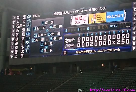 今季初観戦のオープン戦♪未来に翔ばたけヤングファイターズ(*゜▽゜ノノ゛☆ ファイターズ 2017年03月02日 3月1日、札幌ドームでの中日ドラゴンズとのオープン戦。 今季初観戦となり載せたい事はたくさんありますが、 まずオープン戦を観戦する楽しみの1つと言えば 若手選手がアピールして躍動する姿が撮れること♪ 試合終了時のスコアボードを見てください! ワクワクするほどにヤングファイターズです♪ 今回はこの試合終了時のスコアボードを見ながら ヤングファイターズを載せていきます♪(*^ ・^)ノ⌒☆ 1番 センター 岸里亮佑選手 2番 セカンド 太田賢吾選手 3番 ショート 石井一成選手 4番 サード 高濱祐仁選手 5番 指名打者 渡邉諒選手 6番 ファースト 横尾俊建選手 7番 ライト 森山恵佑選手。 この試合の主役と言って良いでしょう♪ 決勝打となる2点タイムリー2ベースヒットのシーンですо(ж>▽<)y ☆ レアード選手と大累進選手が生還γ(▽´ )ツヾ( `▽)ゞ ルーキー森山選手のバッティングに栗山監督もニンマリ(*^▽^*) 8番 レフト 松本剛選手 9番 キャッチャー 清水優心選手 ピッチャー 上原健太投手 未来に羽ばたいて欲しい想いを込めまして、 『はばたく』にはファンならご存知の『翔』の文字を当て字にして 写真はファイターズガール・畠山茉央ちゃんで応援を載せます! 茉央ちゃん「未来に翔ばたけヤングファイターズ(*゜▽゜ノノ゛☆」 って、茉央ちゃんを載せたいだけじゃんΣ\( ̄ー ̄;) というツッコミが入っているかもしれませんが、 当ブログらしさを発揮した今季初観戦更新で ヤングファイターズ応援記事でしたp(^-^)q Fight!! ファイターズをブログランキングでも盛り上げていきたい!! 1日1回のクリックが応援の力になります。 共にファイターズを盛り上げていきましょう(^O^)/ 北海道日本ハムファイターズ ブログランキングへ エキゾチック・ショートヘア ブログランキングへ 人気記事&おすすめ広告 最近の記事 [28回]PR 479480481482483484485486487488489
