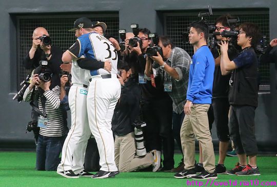バーベイト投手の初先発初勝利のお祝いは、まさかのお笑い更新(;´▽`A`` ファイターズ 2019年04月14日 4月13日、札幌ドームでの千葉ロッテマリーンズ戦。 前回の報告更新で書きましたが、 この試合は応援仲間のKさんからご厚意でお誘いを受けて 三塁側フィールドシートから観戦させて頂きました(^人^) カンシャ 選手と同じ目線を味わえるグランドレベルの素晴らしい席ですから 撮れる写真も臨場感溢れ載せたい事が山盛りなので、 更新できる時に小出しでもザクザク載せていきたい! この試合での最大の出来事、 バーベイト投手の初先発初勝利と 宮西尚生投手の300ホールドを 観戦に向かう前に更新できるかな!? まずはジョニー・バーベイト投手 初先発初勝利おめでとうございます(ノ´▽`)ノ ⌒(祝) 栗山監督とガッチリ握手からの・・・ 熱き抱擁ヽ(*'0'*)ツ 男同士のこの熱さは素敵ですよね:*:・( ̄∀ ̄)・:*: さぁ、ここが重要!! ウイニングボールを手渡すシーン! と気合いを入れて狙っていましたら・・・ こんな時に限ってスタッフが目の前を横切り それでもスタッフをかわして狙いましたが そのコンマ何秒の一瞬が命取りでボールが見えない(T▽T) 僕は心の中で「ス、スタッフゥ~(T▽T)」と泣いたとさ。 バーベイト投手の初勝利を祝う写真は 最後にオチまであったお笑い的な更新に なっちゃいました(;´▽`A`` ファイターズをブログランキングでも盛り上げていきたい!! 1日1回のクリックが応援の力になります。 共にファイターズを盛り上げていきましょう(^O^)/ 北海道日本ハムファイターズ ブログランキングへ エキゾチック・ショートヘア ブログランキングへ 人気記事&おすすめ広告 最近の記事 [15回]PR 5556575859606162636465