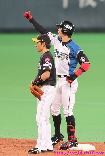 ファイターズらしさを魅せ続けてクライマックスシリーズ優勝о(ж>▽<)y ☆ ファイターズ 2016年10月17日 10月16日、札幌ドームでおこなわれた クライマックスシリーズFINALステージ 福岡ソフトバンクホークスとの第5戦。 今日こそ勝って絶対に決める!! 強い気持ちを持って球場入りすると 絶対に決められると確信する出来事が!! 今シーズンをこれまでで最高のシーズンにしてくれた ファイターズガールの畠山茉央ちゃんに会えたから♪ 最高のシーズンを最高の形で 一区切りつけることができる!! 口下手な僕は感謝の想いが膨らみ過ぎて その想いを上手く伝えることが 出来なかった事は反省しながらも ついつい写真等々お願いしちゃいました(*゚ー゚)ゞ 忙しいなか最高の思い出をありがとうございます(^人^) テラスステージに向かうとステージには 今季限りでファイターズガールを引退する 尊敬と感謝すべきレジェンドな五十嵐有貴ちゃんが書いた 「私を日本一のチアにしてくれ」の実物を見ることができ、 今日絶対に決める!!という想いをより一層強くしました!! テラスステージの写真はまた今度と思ったのですが、 気になり過ぎる存在を発見!! んっ!?キリン!? キリンのマスクを被った安念莉紗子ちゃんでした(;´▽`A`` 可愛い素顔はまた今度(^人^) なぜキリンのマスクで登場かと言いますと、 この日が誕生日の渡邊姫琳ちゃんを キリン繋がりで祝っての事なんです( ´艸`) 姫琳ちゃん誕生日おめでとう(*゜▽゜ノノ゛☆ ここからは初回に大量4失点を許すも ファイターズらしい諦めない気持ちと 短期決戦&選手を信頼した栗山采配での 戦いっぷりを載せていきます!! 4点を追いかける2回裏、中田翔選手の打席。 ド派手な放物線を描いて反撃の狼煙が上げられました!! 2番セカンドに大抜擢の杉谷拳士選手。 3回表の先頭打者、柳田悠岐選手の鋭い打球に 横っ飛びで見事なダイビングキャッチ!! 中田選手の一発で追い上げムードを作りかけている所だけに 先頭打者の出塁は避けたい所での大ファインプレーでした♪ ドヤ顔でファーストの中田選手へ1アウトのブロックサイン(*^-^)b 好守備を魅せた杉谷選手は直後の3回裏、 バットでも魅せてタイムリーヒット!! いつもならスルーされる杉谷名物なタッチですが この時は全員からタッチしてもらい 中田親分からも認められる活躍を魅せました♪ 4回裏1アウト満塁から代打の岡大海選手は センターオーバーの2点タイムリーヒット!! 劣勢と思われた展開を追い付き みんなこの喜びようγ(▽´ )ツヾ( `▽)ゞ ベンチから送られたガッツポーズには このドヤ顔でのガッツポーズで返します! 相手投手交代で1度ベンチの戻ると みんなからハイタッチの祝福(ノ^^)八(^^ )ノ 先発のルーキー加藤貴之投手は 責任を感じてしまっていたのでしょうね! 4失点を帳消しにしてもらい涙を拭きながらのハイタッチ(゚ーÅ) 試合は再開して、つづく中島卓也選手がスクイズ!! 陽岱鋼選手が生還して一気に勝ち越し成功о(ж>▽<)y ☆ 加藤投手、これがファイターズの全員野球ですよ! もう涙はこの直後のCS優勝と日本一に取っておきましょう(b^-゜) 勝ち越しに成功した直後の5回表、 この試合の勝敗を分けたビッグプレーと言って良いでしょう! 2アウト1塁からレフトフェンス直撃のクッションボールを 西川遥輝選手が懸命な送球!! 中島卓也選手の見事な中継プレー!! 本塁を狙っていた内川聖一選手もビックリ 楽なタイミングでの好返球でアウト♪ 流れを死守した大ファインプレーに バース投手「ヒーローをみんなでお出迎えだぁ~(σ・∀・)σ」 いつも1番に張り切ってお出迎えをする大谷選手の さらに前へ出てハイタッチをするバース投手(ノ^^)八(^^ )ノ ベンチに戻ってからも更に抱きついて 感謝が止まらないバース投手でした(*^o^)乂(^-^*) 好守備で魅せたファイターズらしさ。 とくれば直後の攻撃に期待が掛かります!! その5回裏、追加点が欲しい場面でクリンアップが魅せます!! 3番・大谷翔平選手が内野安打で出塁して 気迫の雄叫びヾ(。`Д´。)ノガオォーー つづく中田選手が2ベースヒットでチャンスメイクすると 2塁ベース上で大きく何度も何度も手を叩く 気持ちのこもった姿勢を魅せます!! 3番・4番のチャンスメイクに 5番・近藤健介選手が応えます!! 2点タイムリー2ベースヒットで 大きく大きくガッツポーズと雄叫びをあげます!! 勝利を大きく手繰り寄せる追加点に ベンチは総立ちで近藤選手に拍手を送りますγ(▽´ )ツヾ( `▽)ゞ チャンスメイクから得点した大谷選手と中田選手が 平成のONなハイタッチ(ノ^^)八(^^ )ノ 大谷選手も近藤選手にガッツポーズを送ります♪ 両手のグーで応える近藤選手p(^-^)q 追加点で勝利に大きく前進してからも 今度は好守備で魅せ続けて ファイターズらしさは止まりません!! ただ9回表だけは誰も見たことがないであろう 異次元の空気が漂っていました!! なんと!マウンドにはDHを解除して ピッチャーに入った大谷選手が上がりました!! いつも以上に躍動する投球で 球界記録を更新する165