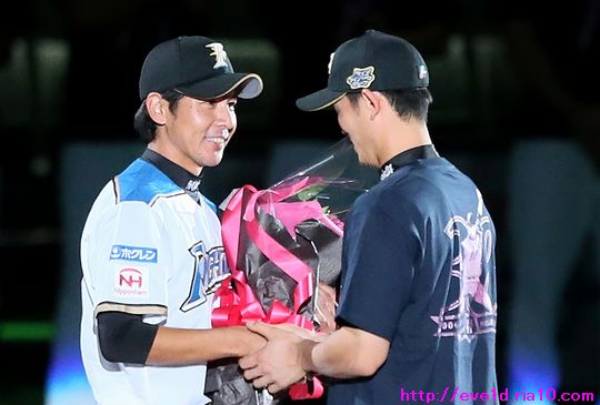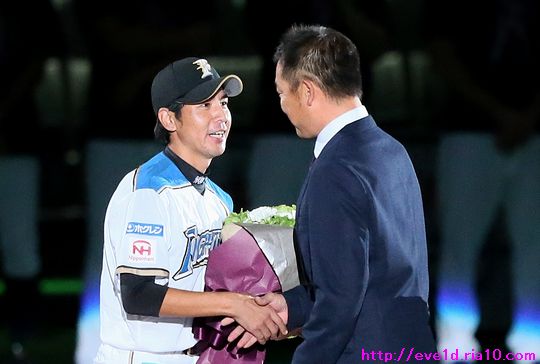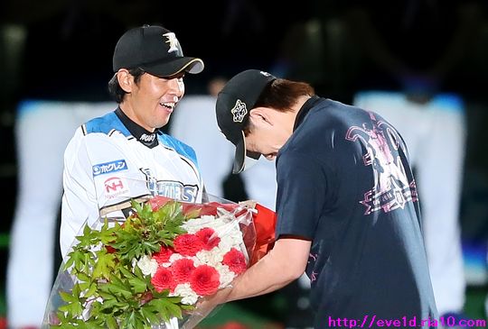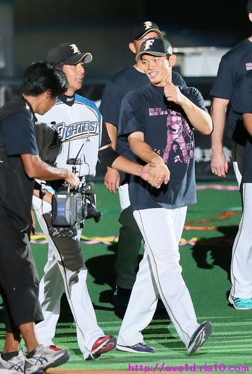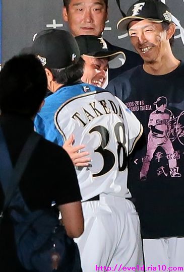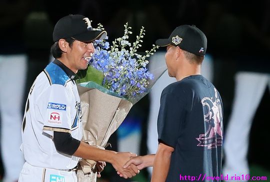 涙をこらえて再挑戦!!武田勝投手引退登板&セレモニーは笑いと感動がいっぱい ファイターズ 2016年10月02日 さぁ、涙をこらえて再挑戦!! 目頭の熱さは残っていますが、 気持ちを整理して写真も整理して 時間は掛かってしまいましたが 感動を伝えていきますよ(ノ´▽`)ノ ⌒(感動) 9月30日、札幌ドームで行われたレギュラーシーズン最終戦。 この試合、武田勝投手の引退登板と引退セレモニーがありました。 前日の更新では写真を選んでいる最中に 涙をこらえきれず途中半端な 更新となってしまいましたm(_ _ )mゴメンナサイ 本日は追加写真も揃えて解説も付いた本番更新です。 引退登板の武田勝投手。 投球前のボール回しから涙を必死に堪えます。 最後の投球はポーカーフェイスではなく 歯を食いしばり渾身の力をストレートに込めて 三球三振で抑えて魅せました!! マウンドに集まった内野手全員と握手からの熱い抱擁(゚ーÅ) 田中賢介選手と。 中田翔選手と。 おっと!ここで涙のスイッチを入れては 前回の二の舞になってしまうので解説は簡単めに(;´▽`A`` 写真を見てもらったら分かりますよね! 見つめ合うだけで分かり合える愛のバッテリーの絆を(*^o^)乂(^-^*) 中島卓也選手と横尾俊建選手とも熱い抱擁。 観客席のファンへお辞儀をして 栗山監督から始まりコーチ・選手全員と握手をして グラウンドを後にしました。 ここからは最終戦セレモニーの様子です。 最終戦セレモニー特別編集映像を 選手達も全員ベンチから見ていました。 最終戦セレモニー特別編集映像 ↓↓↓ ペナントと優勝旗を手にグラウンドを一周して ファンへの優勝の報告と最終戦の挨拶に回りました(^-^)ノ~~ 選手全員での記念撮影。 関係者も入って記念撮影。 ここからは武田勝投手の引退セレモニーです。 武田勝投手の引退セレモニー特別編集映像 ↓↓↓ 特別編集映像を見た後に花束の進呈が行われました。 前日はここで涙の深い深いスイッチを押してしまったので 二の舞をならないようにここは簡単な解説で進んでいきます。 現在はチーム特別本部ゼネラルマネージャー特別補佐と 記憶していますが中嶋聡氏から花束進呈と握手。 高橋信二コーチと握手。 涙の大野奨太選手と笑顔で接する武田勝投手。 もう条件反射!?また涙腺が緩くなってきたので 前日にも書きましたし、これ以上の解説は無しです(;´▽`A`` 宮西尚生投手も上に同じく(;´▽`A`` 増井浩俊投手。 先発転向の際にタイプの違う武田勝投手の投球を 参考にしたと言う程に尊敬していたのでしょうね! 武田久投手。 W武田として長い間チームを支えてきた2人ですから 積もる話はたくさんあるのでしょうね! 色々な言葉を交わしているように見えました。 挨拶では「手紙を読みます!」と言いながら 手紙を見ずに言葉を述べるシュールなギャグをかまします( ´艸`) 最後の挨拶もやっぱり武田勝ワールドな 愛のある笑いが詰め込まれていました:*:・( ̄∀ ̄)・:*: 一塁側からグラウンドを一周する武田勝投手(^-^)ノ~~ ファンから花束が渡されたおかげで良い写真が撮れましたぁ~o(^▽^)o リーグ優勝での紙テープが敷き詰められたグラウンドは 最高の花道になりました:*:・( ̄∀ ̄)・:*: 武田勝投手の登場曲『1/6の夢旅人2002』を歌う シンガーソングライターの樋口了一さんが生歌を披露♪ このセレモニーの為に九州から駆けつけてくださったようです! まるで歌手を引退するかのようにグラウンドにマイクを置き グラウンド1周を再開する武田勝投手。 そして、ファンにオカリナの演奏を披露しますが 先程マイクを置いてきたので音は届かない様子!? この後、最後に行われたヒーローインタビューでは しっかりマイクに音を拾ってもらいオカリナ演奏を披露し アンコールが起こるほどの大盛況( ´艸`)ドレミファソラシド↗ 武田勝投手の為に成し遂げた パ・リーグ制覇をファンと共に祝いました♪ 次は日本一の時ですね(b^-゜) 選手全員と握手をして 最後は特に関わりの深い選手達と熱い抱擁。 表情にも注目して見てください(゚ーÅ) 宮西投手と。 増井投手と。 武田久投手と。 高橋コーチと。 大野選手と。 そして、栗山監督と。 愛のバッテリーは繋いだ手を大きくルンルン♪と振りながら 笑顔でマウンドへ向かいますε=ε=(o*゜∇゜)o(o*゜∇゜)o~♪ 胴上げでは宙高くまで舞い 驚きと喜びでポーカーフェンスは崩れちゃいましたо(ж>▽<)y ☆ 記念撮影では選手達をバックに投球しているところを 撮ろうとするのですが・・・ ここで武田勝ワールドが発動!! 記念撮影でまさかの牽制球!? 武田勝投手「どうだっ!お前ら牽制に引っ掛かっただろう(σ・∀・)σ」 そんな牽制球を2度挟んでようやく本当の投球に移りました( ´艸`) そして、ここでサプライズなヒーローインタビューΣ(・ω・ノ)ノ! 武田勝投手がヒーローだぁ~ヾ(@^▽^@)ノ 不意に始まったヒーローインタビューなので カメラを固定できずに手ブレが酷いですが 武田勝ワールドな面白トークをお楽しみください♪ 先程書いたオカリナもドレミファソ
