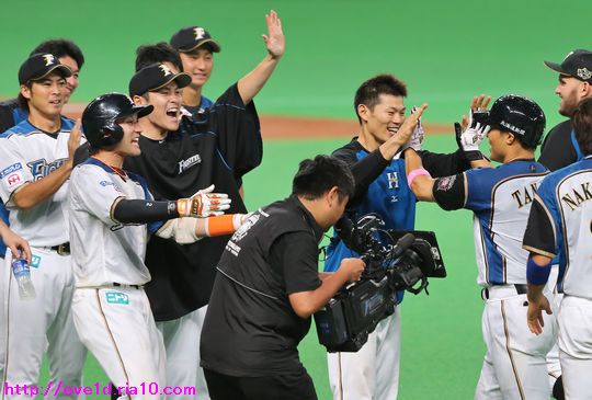 歓喜の抱擁!!激しく飛び散る水しぶき!!感動のサヨナラ勝利γ(▽´ )ツヾ( `▽)ゞ ファイターズ 2016年08月11日 8月10日、札幌ドームでの埼玉西武ライオンズ戦。 長時間に亘る遅くまでの観戦で みなさま本当にお疲れ様でした(`・ω・´)ゞ 初回のビハインドを追いかける展開で 完全に主導権を握られようとも 諦めない姿勢で守備からリズムを作り 追い上げ追いつき延長の末に サヨナラ勝利を掴み取った感動の試合(゚ーÅ) その過程だけでも数記事も書けそうな位に たくさんの選手達の頑張りがそこにはありましたが、 今回は熱戦で遅い帰宅となり時間もありませんし割愛で また後日に載せられたらと言うことで、 本日はなんと言っても歓喜のサヨナラ勝利シーンです!! さぁ、感動のシーンを載せていきますよ(ノ´▽`)ノ ⌒(感動) 鋭い当りでサヨナラ勝利を生んだ田中賢介選手と 激走で感動を生んだ西川遥輝選手の熱き抱擁シーンですヽ(*'0'*)ツ そこに水掛け部隊のレアード選手と谷口雄也選手が到着して、 勝利のヒーローを襲い、水しぶきが激しく飛び散ります!! チーム一丸で掴み取ったサヨナラ勝利で 共に戦ったチームメイト全員が集まり 勝利の喜びを分かち合います(*^o^)乂(^-^*) そして、ファイターズの強さの象徴とも言えるムードの良さでは、 もう名物化したと言っても過言ではない『杉谷拳士スルー』を 空気を読む男・田中賢介がここで実践!! 杉谷選手「オレにもハイタッチしてくださいよぉ~(;´Д`)ノ」 田中賢介選手「いやぁ~、拳士はちょっと勘弁(;´▽`A``」 こうしてチームは最高潮のムードでサヨナラ勝利を祝いましたが、 この勝利もこの選手の活躍無しでは語れませんでした!! 同点打のヒーロー・レアード選手です!! って、プレイヤーズスペシャルの前日で かぶり物とTシャツのメッチャ寿司職人スタイルですやん( ´艸`) そして、サヨナラ勝利の立役者 田中賢介選手がヒーローでした(ノ^^)八(^^ )ノ ファイターズらしい諦めない姿勢が生んだ 感動のサヨナラ勝利(゚ーÅ) 首位ホークスが敗れゲーム差は3になりましたが、 ここまで来たらもう自分達の野球を貫き爆ぜるだけ!! ファンもファイターズを信じて爆ぜるだけなので 僕もカード勝ち越しに向けて現地で爆ぜてくるぞっ(*゜▽゜ノノ゛☆ ファイターズをブログランキングでも盛り上げていきたい!! 1日1回のクリックが応援の力になります。 共にファイターズを盛り上げていきましょう(^O^)/ 北海道日本ハムファイターズ ブログランキングへ エキゾチック・ショートヘア ブログランキングへ 人気記事&おすすめ広告 最近の記事 [16回]PR 854855856857858859860861862863864